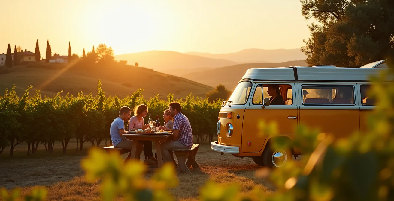 Sostare con il proprio camper a pochi metri da un vigneto è un’esperienza magica, ma richiede un’etichetta precisa. L’errore più comune è considerare l’agricoltore come parte del “pacchetto turistico”, un animatore a disposizione per domande e curiosità. Ricordate sempre la regola d’oro: siete ospiti temporanei in un luogo di lavoro. Il vostro privilegio è poter osservare questa routine, non interromperla. La discrezione e il rispetto sono le monete più preziose che potete offrire.