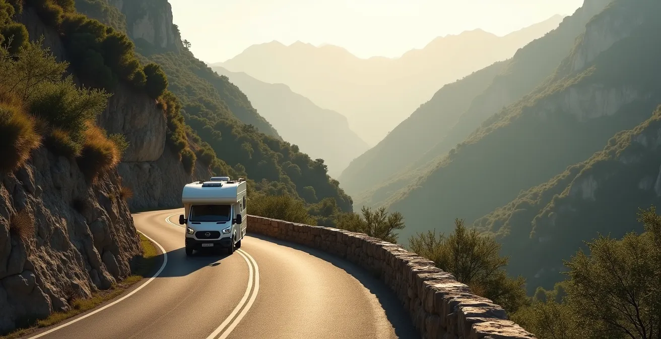 Per un camperista abituato alla linearità della pianura, la vista del primo cartello che segnala una pendenza del 15% può scatenare un’ansia profonda. Il peso del veicolo sembra moltiplicarsi, le strade si restringono e l’odore acre dei freni surriscaldati diventa un timore concreto. Molti si affidano a consigli generici come “vai piano” o “fai attenzione”, ma queste sono solo constatazioni, non soluzioni tecniche. La guida in montagna, specialmente con un mezzo pesante come un camper, non è una questione di coraggio, ma di fisica applicata.