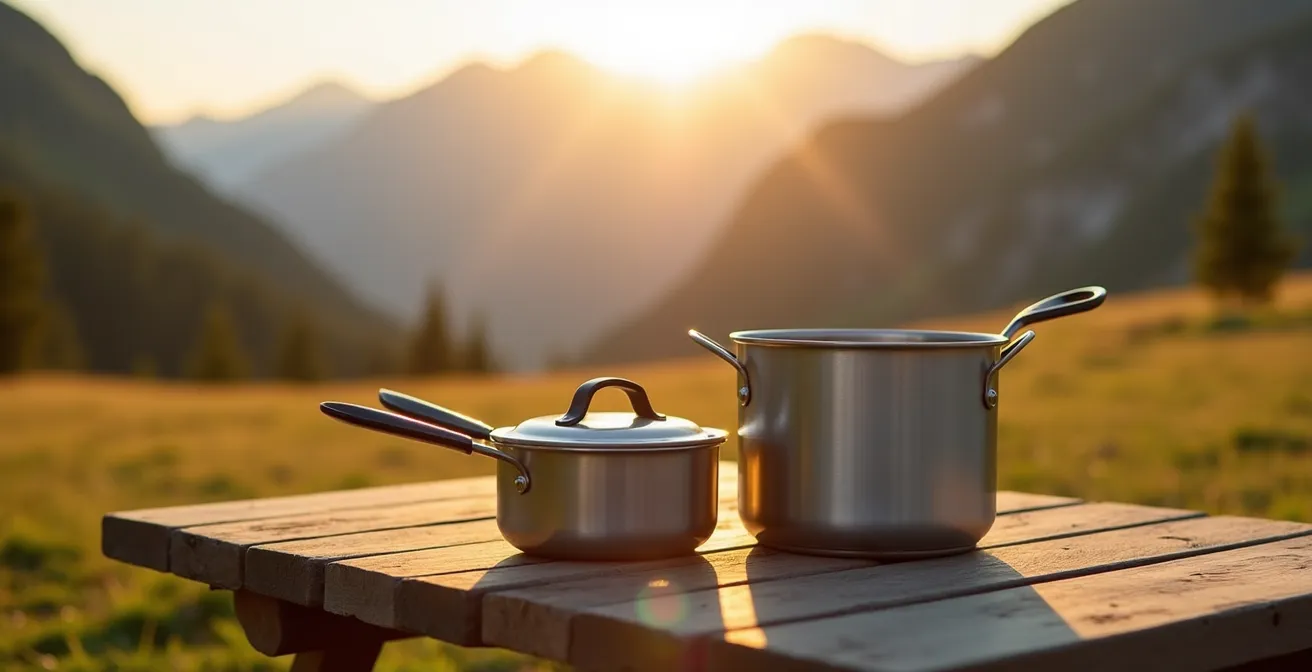 Quando si prepara uno zaino da trekking, ogni grammo conta. Il dibattito sulla scelta del pentolame si riduce spesso a un compromesso apparentemente semplice: la leggerezza dell’alluminio contro la robustezza dell’acciaio inossidabile. Molti escursionisti si fermano qui, scegliendo in base al peso o alla paura, a volte infondata, che l’alluminio possa essere dannoso per la salute. Altri considerano opzioni come il titanio, apprezzato per la sua leggerezza estrema ma spesso criticato per la sua tendenza a creare punti caldi e bruciare il cibo.
